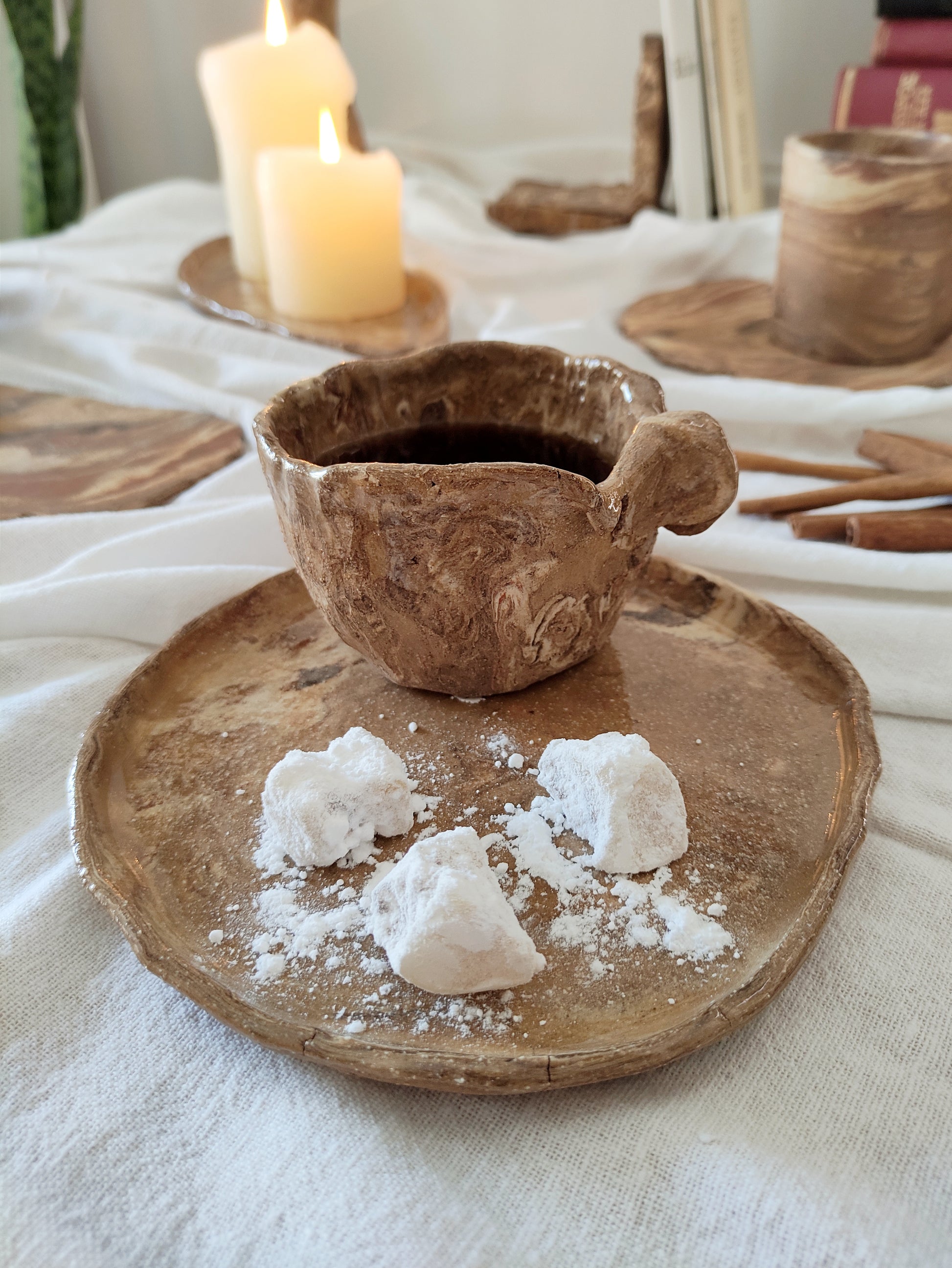 Κατασκευασμένο από πηλό stoneware και σμάλτα ασφαλή για τρόφιμα.