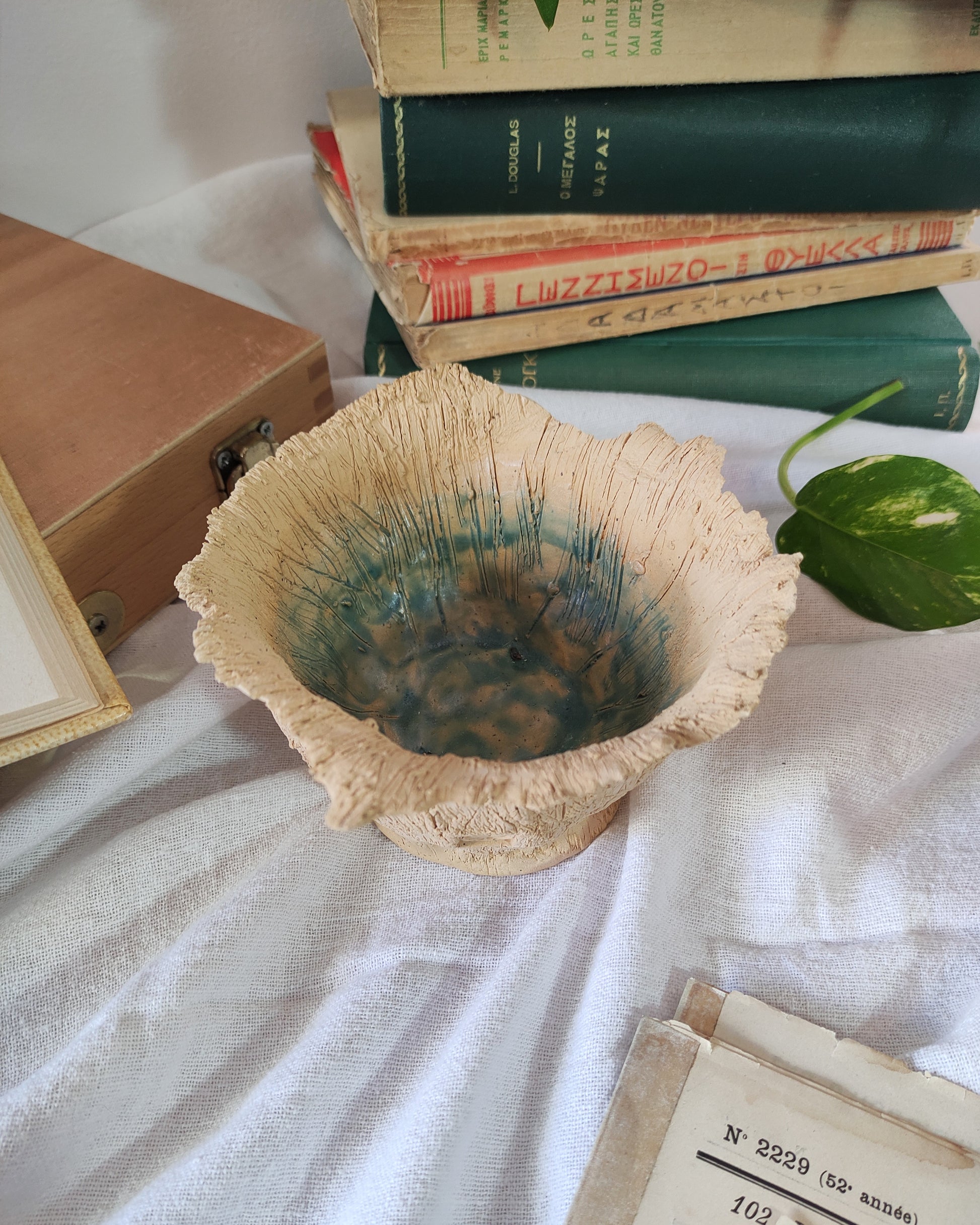 Κατασκευασμένο από πηλό stoneware και σμάλτα ασφαλή για τρόφιμα.